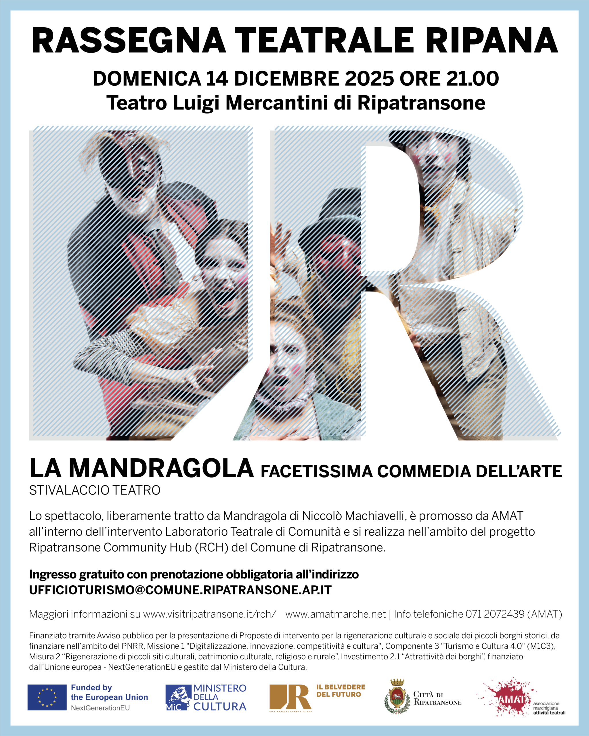 Nell’ambito della Rassegna Teatrale Ripana promossa da AMAT all’interno del progetto Ripatransone Community Hub (RCH) del Comune di Ripatransone, il Teatro Luigi Mercantini ospita La Mandragola, una commedia liberamente tratta da Mandragola Niccolò Machiavelli.