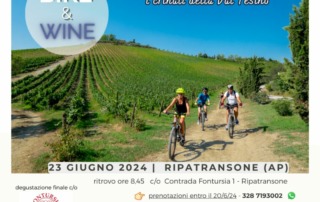 Il 23 Giugno partecipa alla ciclo escursione in e-bike attraverso Ripatransone, Marano (Cupra Marittima) e Grottammare. Itinerario facile con guide FCI, soste
