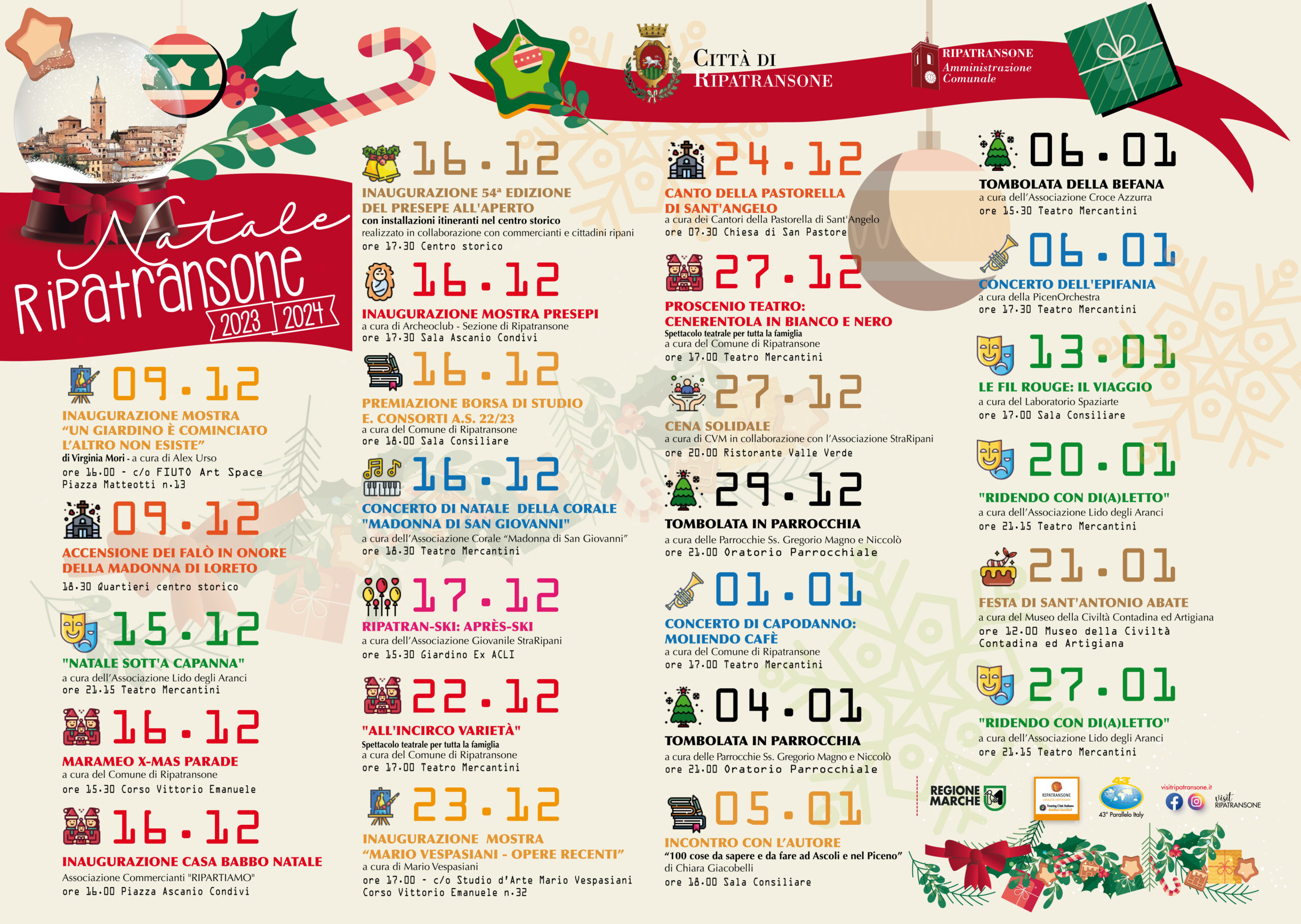 Natale 2023admin2023-12-05T22:53:44+01:00Condividi questo articolo!FacebookXLinkedInWhatsAppPinterestEmail Related Posts Le Vie di Bacco 2025dal 21 novembre al 7 dicembre Le Vie di Bacco 2025dal 21 novembre al 7 dicembre November 11th, 2025 Laboratorio teatrale di comunità – Secondo appuntamento della rassegna Laboratorio teatrale di comunità – Secondo appuntamento della rassegna October 24th, 2025| 0 Comments Casa del donatore. L’artista Antonio Pronostico firma la nuova campagna AVIS Comunale di Ripatransone Casa del donatore. L’artista Antonio Pronostico firma la nuova campagna AVIS Comunale di Ripatransone October 17th, 2025| 0 Comments Plurals Broaden Horizon – Laboratorio Messy Face Plurals Broaden Horizon – Laboratorio Messy Face October 14th, 2025| 0 Comments Grande successo per la XLI Rassegna Corale Internazionale “Belvedere del Piceno” Grande successo per la XLI Rassegna Corale Internazionale “Belvedere del Piceno” October 8th, 2025| 0 Comments