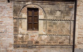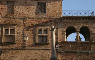 Casa di Ascanio Condivi, già Bruni, Checchi e Marezi Riprendendo il corso Vittorio Emanuele, in salita, a sinistra, una piccola colonna corinzia,