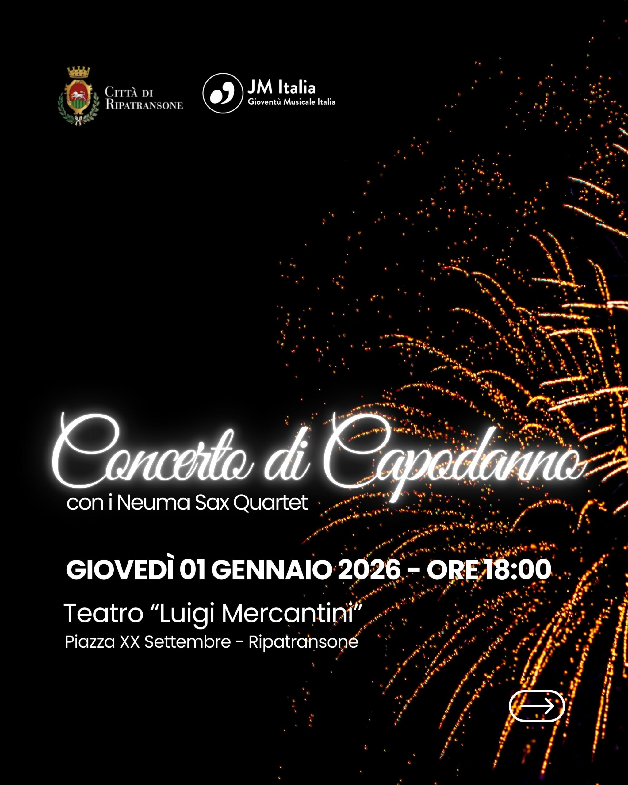 Ripatransone saluta l’arrivo del nuovo anno con l’eccellenza della musica. Giovedì 1° gennaio 2026, alle ore 18:00, la splendida cornice del Teatro Luigi Mercantini ospiterà il tradizionale Concerto di Capodanno, un evento a ingresso libero dedicato a tutta la cittadinanza e ai visitatori.