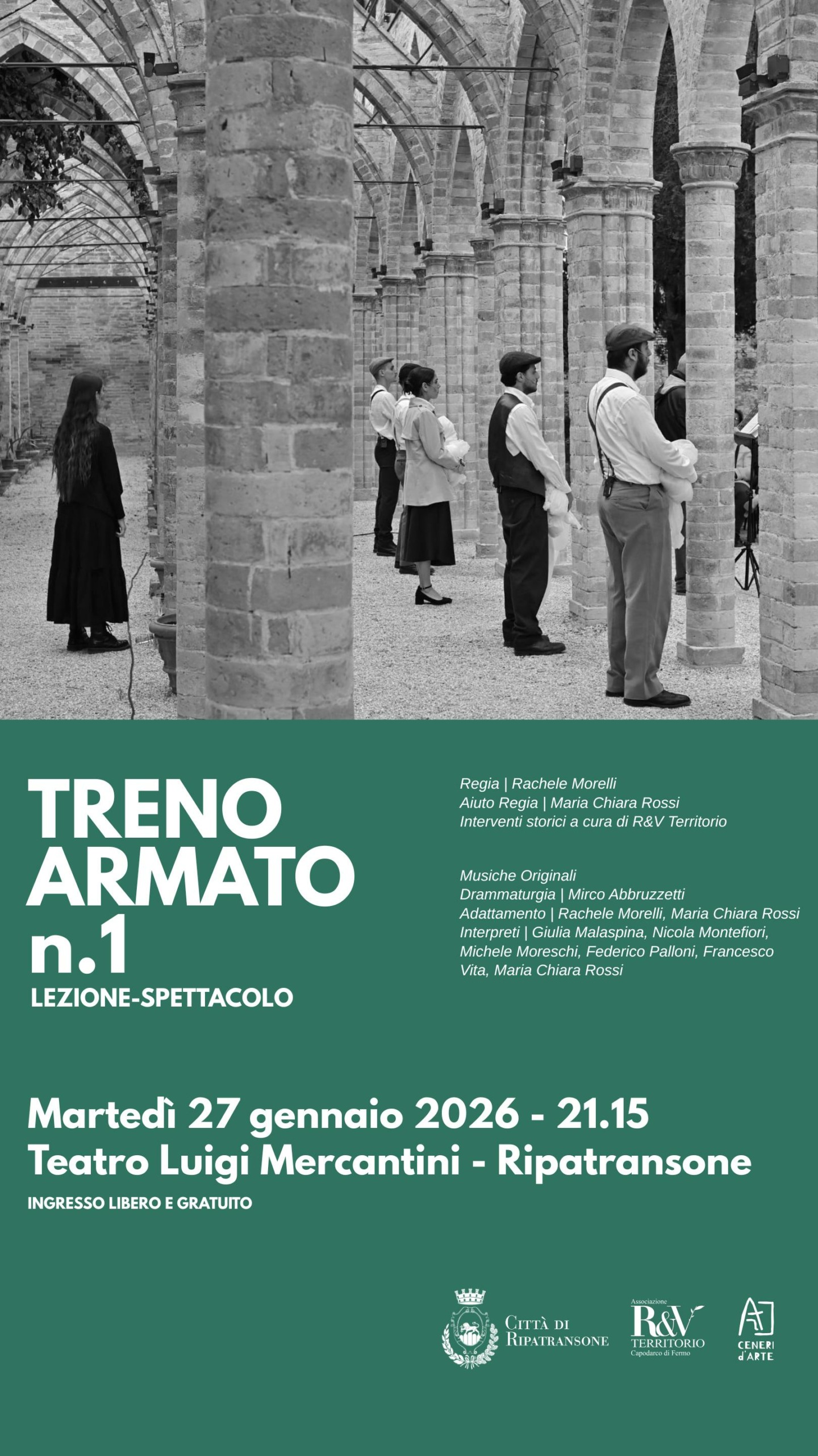 In occasione del Giorno della Memoria, il Teatro Luigi Mercantini di Ripatransone ospita l’appuntamento culturale: “Treno Armato n.1”, una lezione-spettacolo che riporta alla luce una pagina cruciale, ma spesso dimenticata, della Prima Guerra Mondiale lungo la costa adriatica.