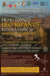 Domenica 31 agosto a Ripatransone il “Primo Torneo Leo Ripanus”, un’importante gara di Tiro con l’Arco Storico che si svolgerà in collaborazione con “Gli Arcieri Storici AVIS Spinetoli-Pagliare”, F.IT.A.ST. e F.I.T.ARCO. L’evento, valido come Campionato Nazionale, rappresenta un’occasione unica per unire la tradizione sportiva alla valorizzazione del nostro borgo medievale.