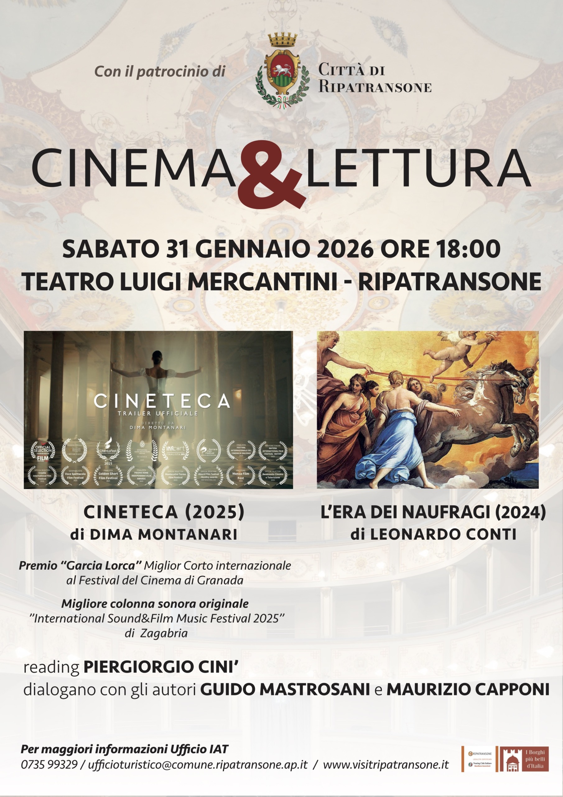 Sabato 31 gennaio 2026, alle ore 18:00, lo storico Teatro Luigi Mercantini di Ripatransone ospiterà “Cinema & Lettura”, un evento culturale di eccellenza. Ci sarà un dialogo tra due opere di rilievo:
