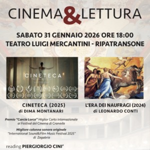 Cinema & Lettura al Teatro MercantiniSabato 31 gennaio alle 18:00, il Teatro Mercantini presenta "Cinema & Lettura". Reading live con Piergiorgio Cinì e dialoghi con gli autori Dima Montanari e Leonardo Conti. ... 31 Gen18:00 Teatro "Luigi Mercantini"Teatro "Luigi Mercantini"
